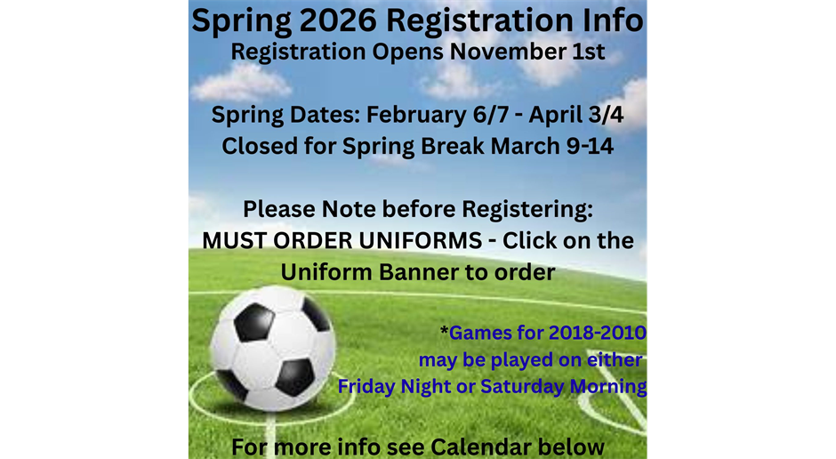 Spring 2026 Registration Opens November 1st, 2025 and late registration closes January 4th, 2026